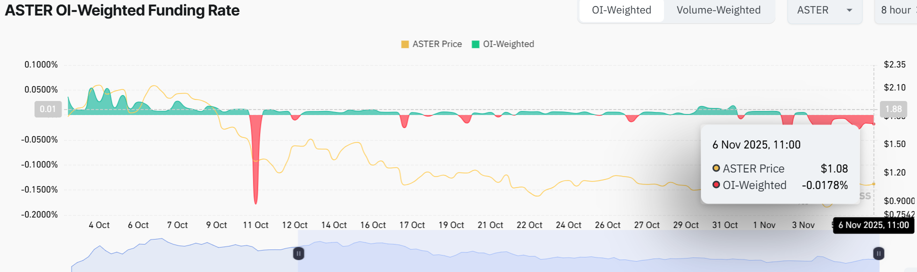 According to CoinGlass statistics, the ASTER futures Open Interest (OI) has slipped by 3.03% over the past 24 hours, suggesting that shorts have accumulated. Notably, its volume has decreased by 32% to $2.49 billion, showing reduced market activity. Aster has also been doing well on the long-to-short ratio. Currently at 0.95, indicating a better-balanced market sentiment with a minor inclination towards long positions.