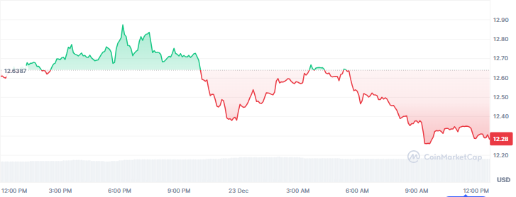 Chainlink is exchanging hands at around $12.28, down by 2.80% over the last 24 hours. The altcoin opened the session from intraday lows of $12.25 and surged to $12.88, where it faced resistance and dropped to the current level. Its market capitalization stands at around $470 million.