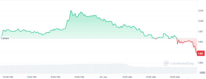 XRP has lost most of the momentum it gained earlier this month, as it climbed to highs of $2.40. As of this writing, the altcoin has dropped below the $2 key level, recording a decline of 0.30% on the daily chart. Meanwhile, its trading volume has decreased by 20% to $2.8 billion.