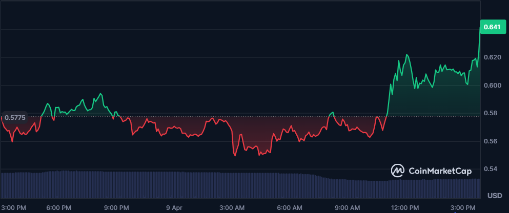 SIREN has emerged as the best crypto gainer today, as it extends its upward rally. The memecoin is up by more than 9% today, pushing the weekly gains to 220%. As of this writing, SIREN is trading around $0.641, with a market cap of $445 million.