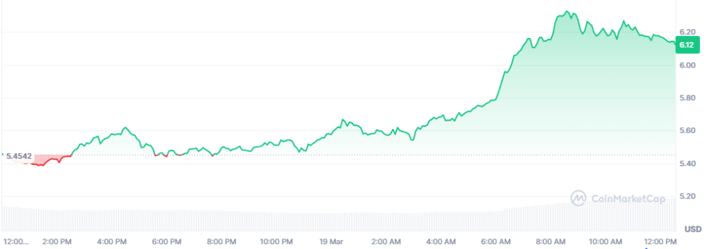 DEXE has continued to extend its upward rally as the price sets new highs. The altcoin has surged from lows of $2.2 to highs of $6.3 on the monthly chart, recording a gain to 160%. Moreover, its market capitalization and trading volume have climbed to $520 million and $18 million, respectively.