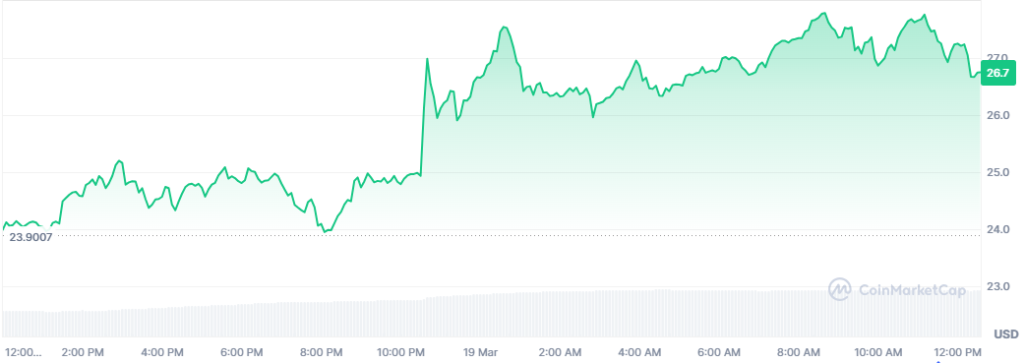 In addition, a crypto analyst, Ali Martinez, recently pointed to an inverse head-and-shoulders breakout on the price chart, indicating a bullish trend. The breakout at the mid-$20 range shows strength, and the analyst predicts targets of $45 to $57.