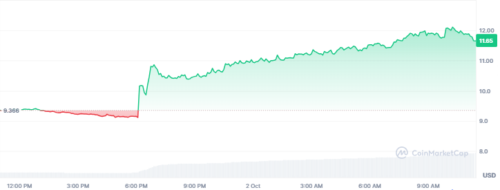 DeXe is trading around $11.65 with a surge of 25%, joining the list of the best crypto gainers today. Today’s rally has elevated the altcoin’s monthly gain to 60%. Resistance and support for DeXe have been noted at $7 and $13. Its market cap and trading volume stand at $995 million and $60 million, respectively.