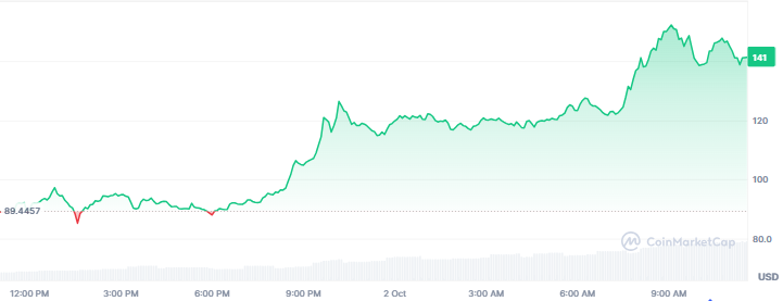 Zcash has emerged as the best crypto gainer today, with a solid 80% gain over the past 24 hours. This latest rally has seen the price surge from a low point of $78 to $152, where it faced a pullback to $141. Moreover, its market cap and trading volume have surged to $2.24 billion and $1.06 billion, respectively.