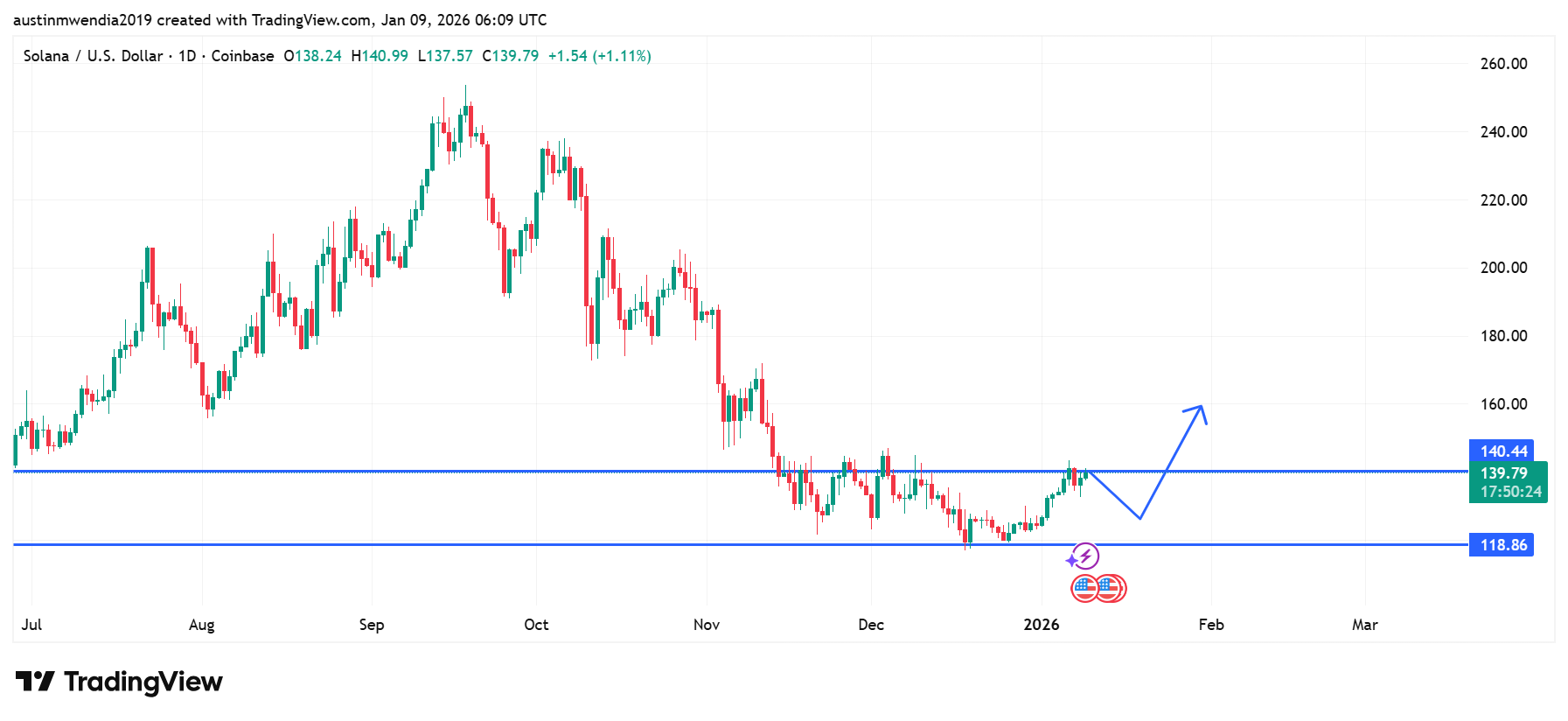 - Solana is staying strong above $118, and a move past $140 could lead to a push toward $160.