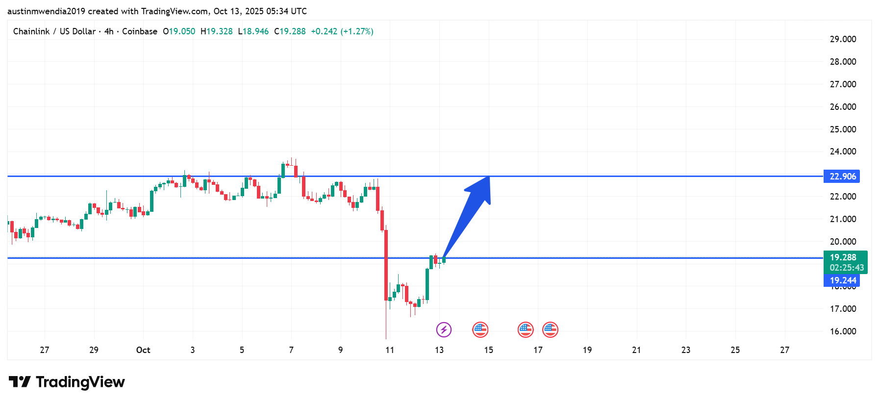The price has built a short-term base that supports the upward move. A clean breakout above $19.50 would confirm growing momentum. However, failure to hold this support could trigger another retest of $18.50. Chainlink remains in a short-term recovery phase with a strong chance of retesting the upper resistance range soon.