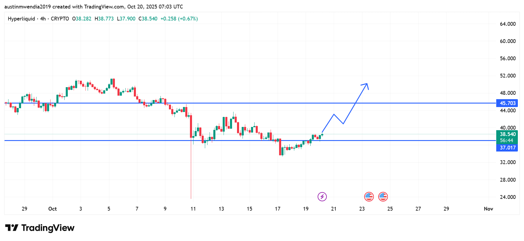 Hyperliquid has started to recover after finding strong support near $37.01. This rebound suggests that bulls are slowly regaining control after several days of sideways action.
