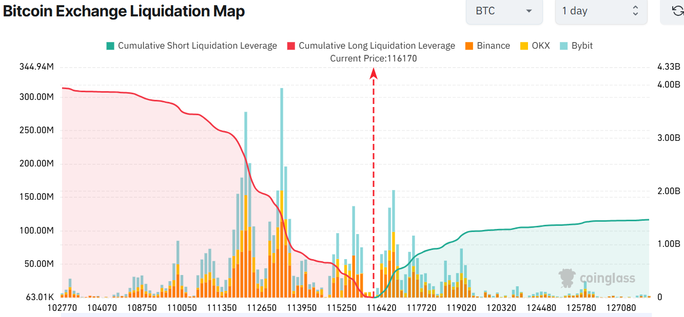 Bitcoin Exchange Liquidation Map: CoinGlass