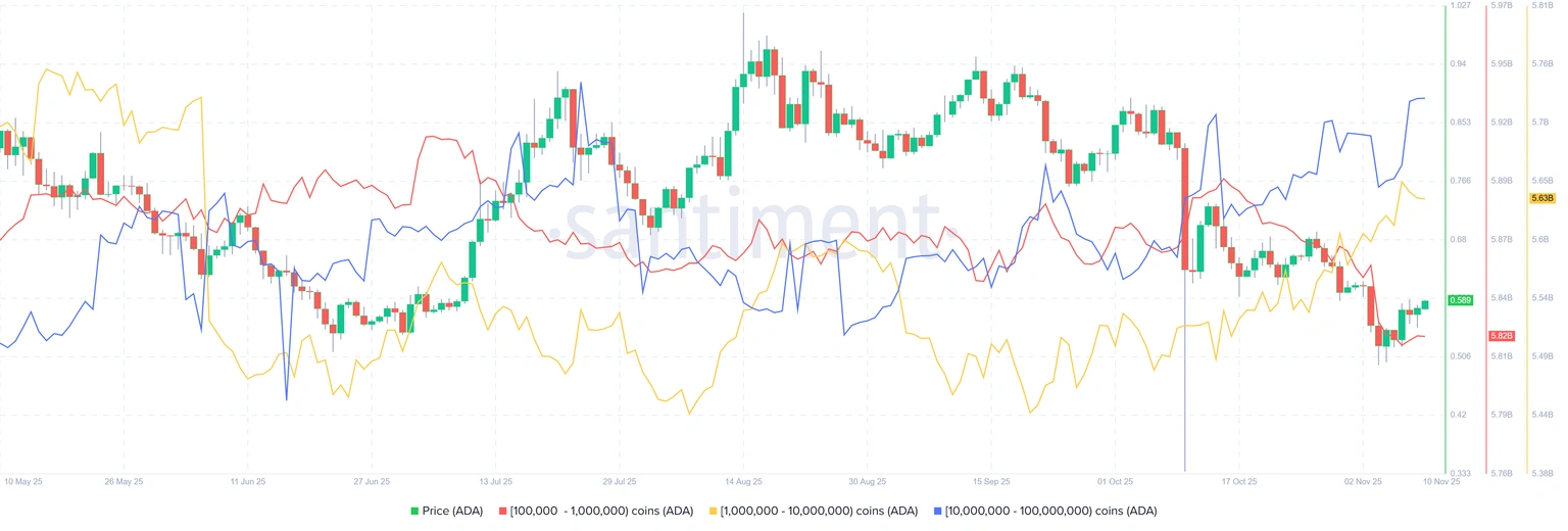 The Supply Distribution data released by Santiment backs a positive trend in Cardano. This comes as specific whales that purchased ADA during the recent price drops. The metric shows that the number of whales with between 1 million and 10 million ADA tokens (yellow line) and 10 million and 100 million tokens (blue line) has earned a total of 160 million ADA tokens between Thursday and Monday. This demonstrates that this group of whales took advantage of the discount and amassed Cardano.