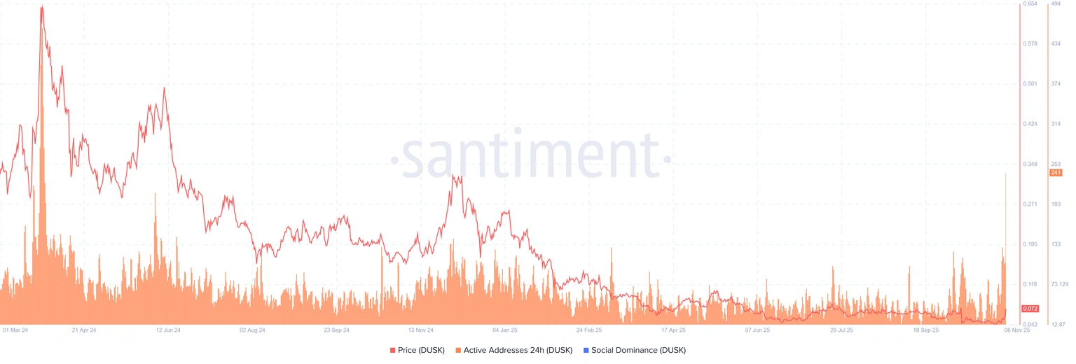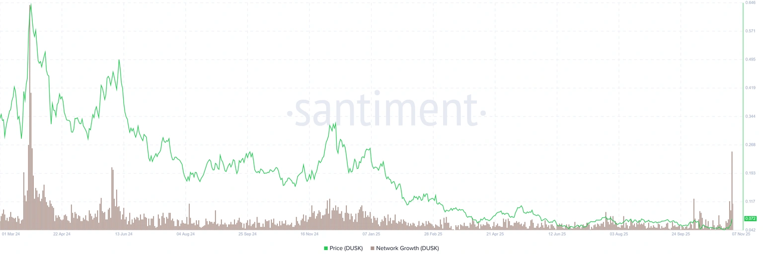 On the other hand, according to Santiment data, the network growth index for DUSK jumped to 95 on Thursday, up from 13 on Monday, the highest since March 2024. Though stabilized since Friday, it stands at 32. These high levels still point to a very wide-ranging bullish outlook for DUSK.