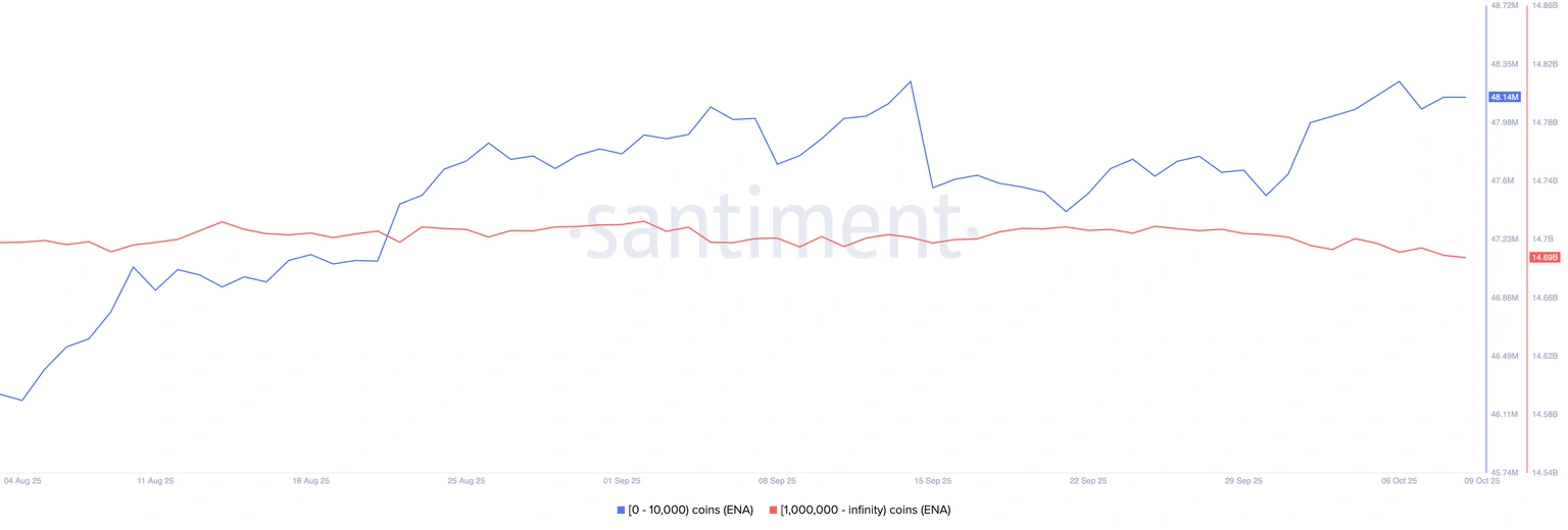 Additionally, supporting the retail interest are on-chain statistics, as Santiment data shows that holders of 0 to 10,000 ENA tokens hit a cumulative total of 48.14 million coins on Thursday, up from 47.51 million on September 30. This suggests that bullish momentum is building, as investors hold billions in assets.