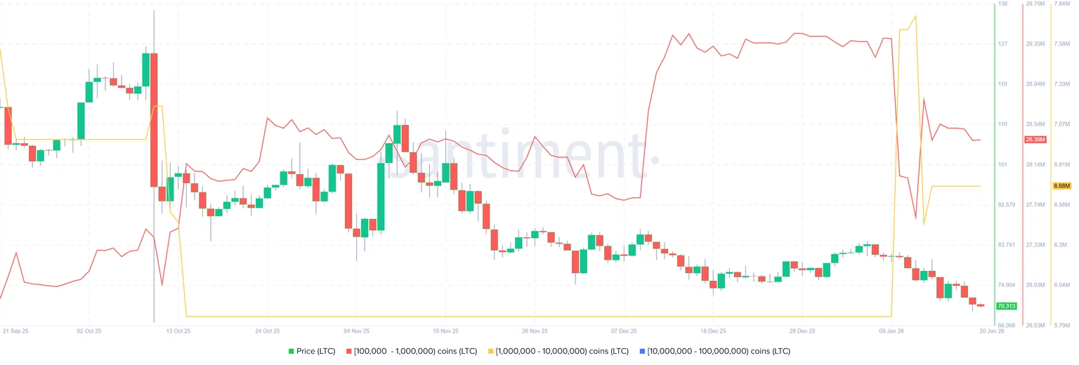 Looking at the bigger picture, if volatility continues and LTC breaks below $67, downside risk could emerge. This could see the token seek further support around the $63 level. However, as long as the price holds above the immediate resistance at $78, it could recover and push back toward the $85-98 resistance area.