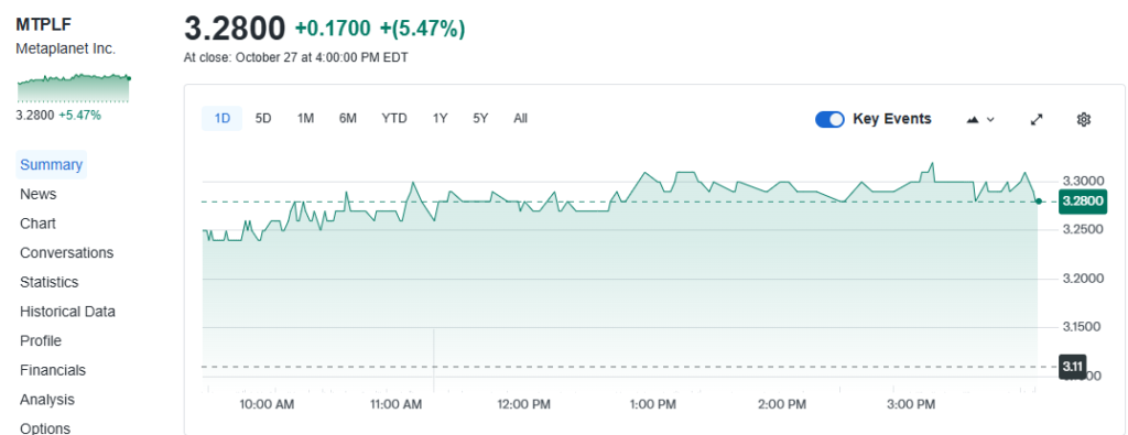 Under the new plan, Metaplanet will implement buybacks via the Tokyo Stock Exchange between October 29, 2025, and October 28, 2026. The program will be based on a discretionary trading agreement, which will enable the company to have flexibility in execution.