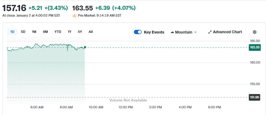 The momentum of the Bitcoin purchase was reflected by the company’s stock. Strategy’s stock (MSTR) closed last Friday at $157.16 and is up over 4% in pre-market trading at around $163.55.