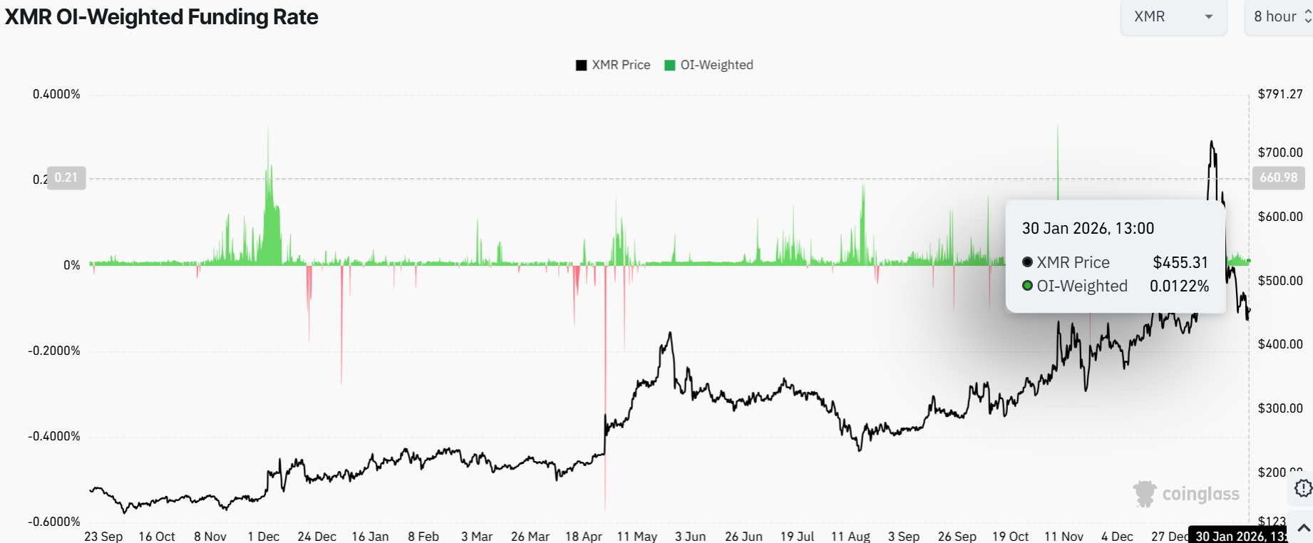 Meanwhile, the recent flip in the funding rate in the derivatives data could trigger a potential shift in market sentiment. If the recent price level holds and the bulls reclaim the $481 barrier, XMR could target a move toward the upper resistance near $619, marking a bullish reversal pattern.