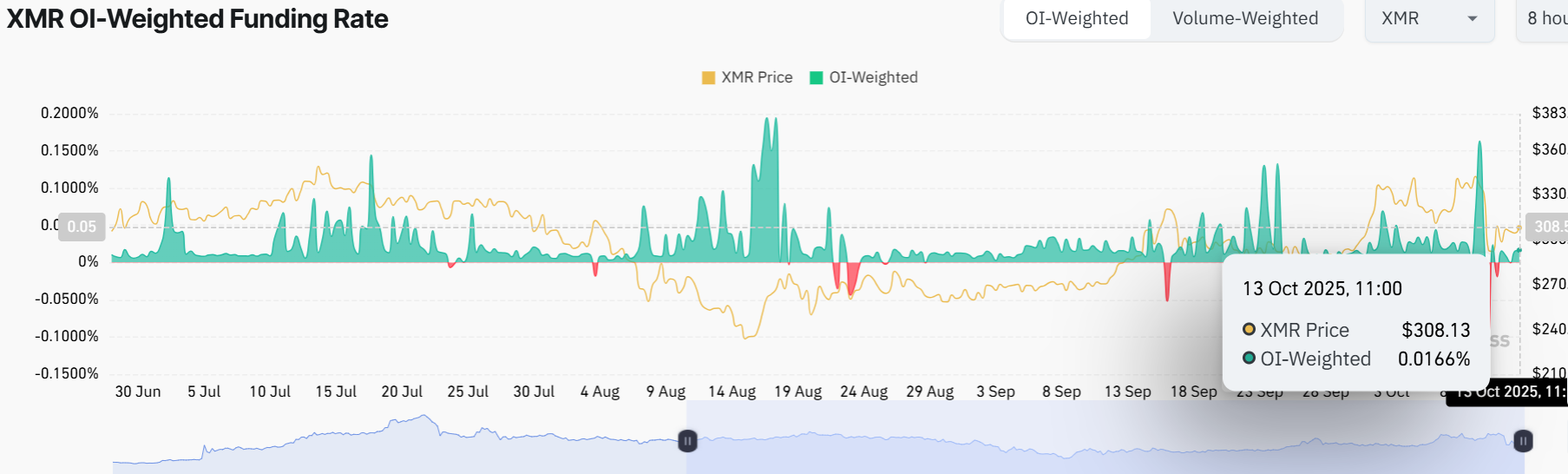 A quick look at the Monera price data from CoinGlass shows that the funding rate of XMR indicates a positive outlook. XMR has a volatile OI-weighted funding rate with the most recent funding rate of 0.0166. These ups and downs are a result of the trading conditions in the entire market. The difference between the trend of the price and the rate of funding denotes that the market may be apprehensive, but there is optimism that the token will continue the recovery.