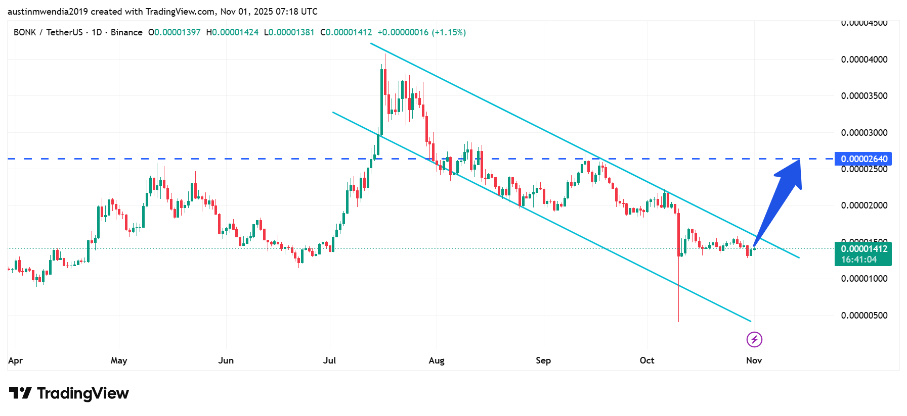 However, if the price fails to hold current levels, it may revisit $0.000010 for support. Traders are watching for a daily close above $0.000015 to confirm strength. Meanwhile, a successful breakout could trigger a sharp rally toward $0.000026 as confidence returns to the memecoin market.