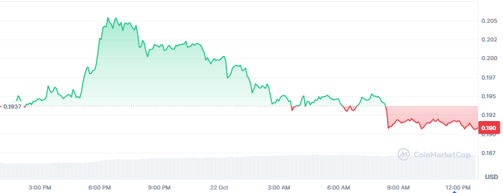 The largest memecoin, Dogecoin, is trading on a negative note today following the broad market downturn. The memecoin is down by 1% over the past 24 hours, pushing the weekly decline to 7%. As of this writing, the price is hovering around $0.190 with a market cap of $28 billion.