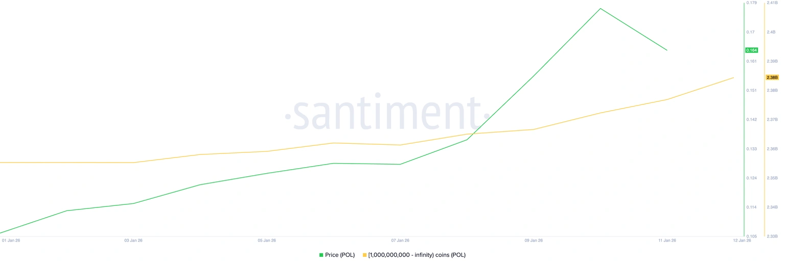 Additionally, the Santiment data indicates consistent whale demand, with whales accumulating more holdings. There are over 1 billion POL holding whales, holding a total of 2.38 billion tokens, which is higher than the 2.35 billion on January 1. This further indicates renewed interest this year, which may drive a surge in the Polygon price.