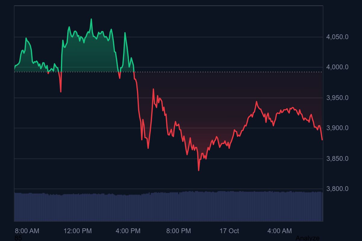 On the SharpLink ETH dashboard, the company paid an average of $3,603 per token. The company’s total portfolio value is about $3.5 billion, with roughly $294 million in unrealized profits. At the time of writing, Ethereum is trading at $3,887 following a 3% decline in the past 24 hours.