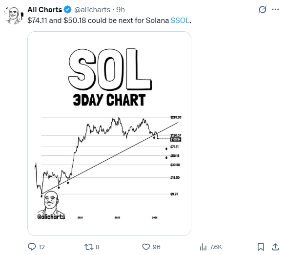SOL Price Risks Further Drop to $75-$50 Levels