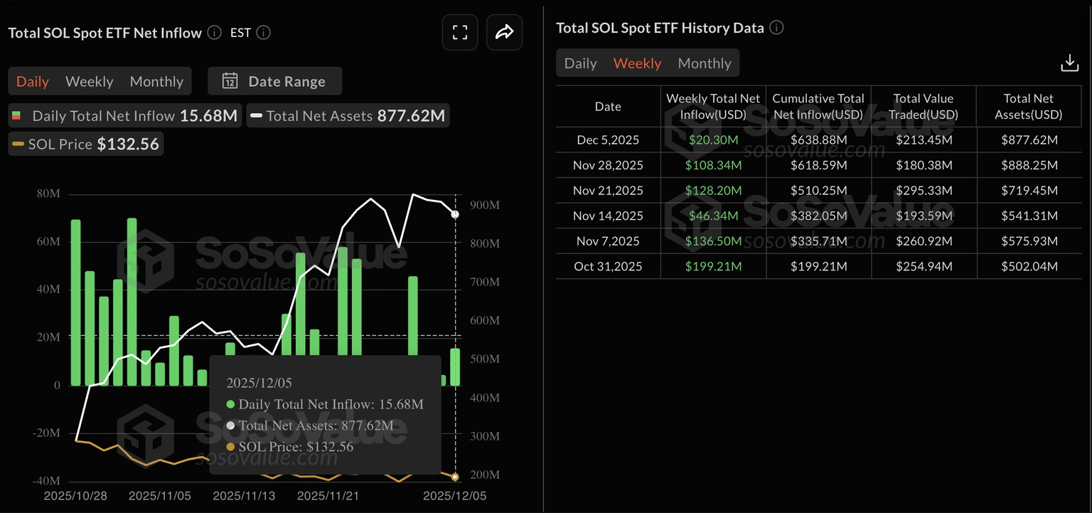 On the other hand, the institutional appetite for Solana has waned. A total of $20.30 million in net weekly inflows into SOL ETFs, compared to $108.34 million the previous week. Nevertheless, the inflows of $15.68 million on Friday extended the streak of weekly inflows to six weeks.
