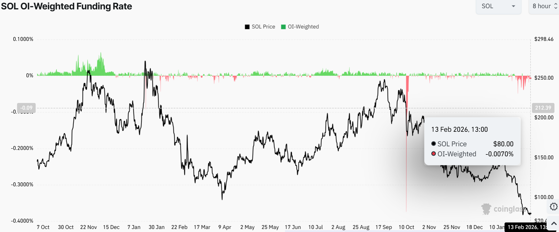 Nevertheless, the derivatives markets are an indicator of contravention among the traders. According to the CoinGlass data, the funding rate of SOL on Friday became negative at -0.0070%, showing that short positions are covering long positions. This further reinforces the bearish mood in the SOL market.