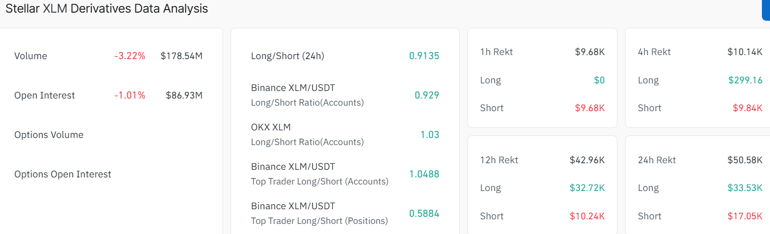 Moreover, the futures Open Interest (OI) of XLM has plummeted to $86.93 million on Wednesday. It has been gradually declining since the January 6 peak of $166.99 million. This decrease in OI demonstrates a decline in investor involvement and sends the signal of a negative perspective.