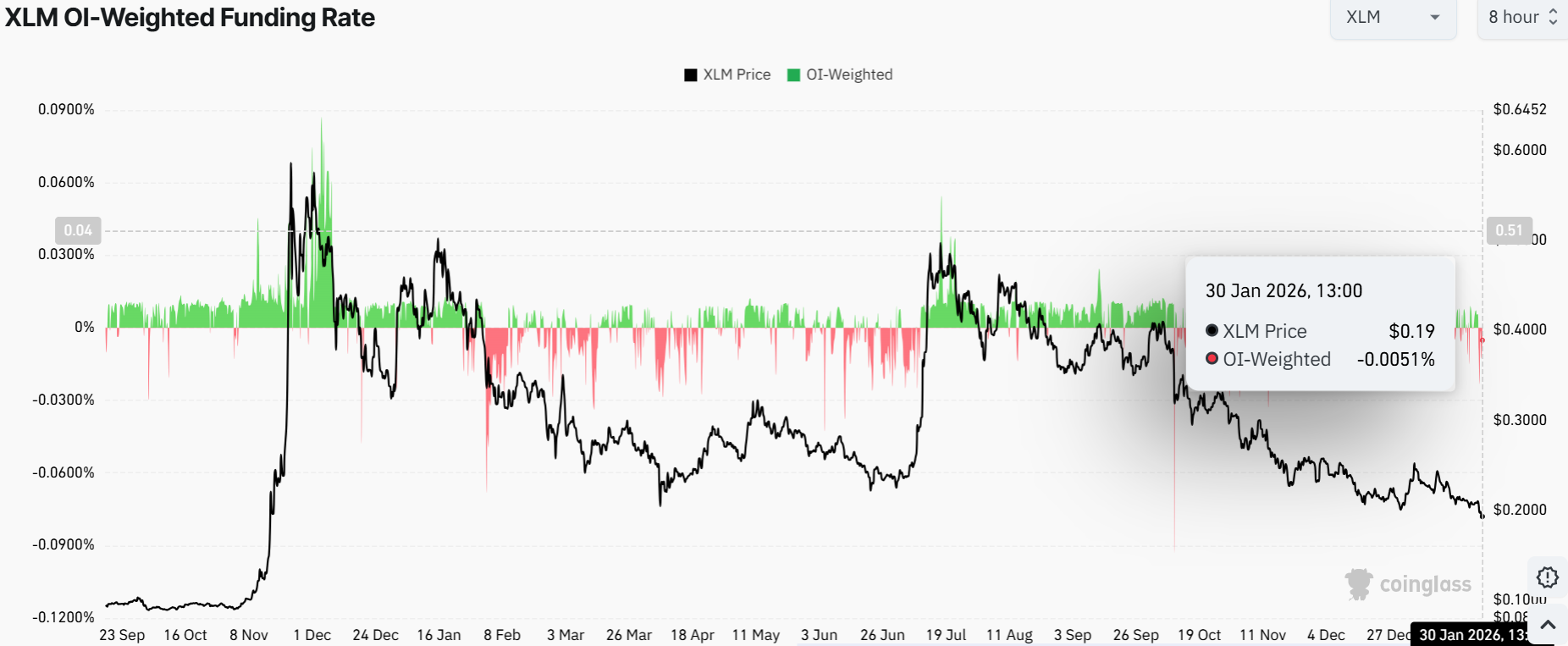 Stellar (XLM) price remains in the red and has fallen below $0.20 on Friday, currently at $0.19. The bearish mood is present in the whole crypto market, led by major altcoins like Bitcoin (BTC), which is down 6% to $82,000. Moreover, the XLM Open Interest (OI) has declined, and the funding rates in the derivatives market are negative, reinforcing the bearish grip. Technically, when the momentum indicators are weak, an additional XLM correction will occur.