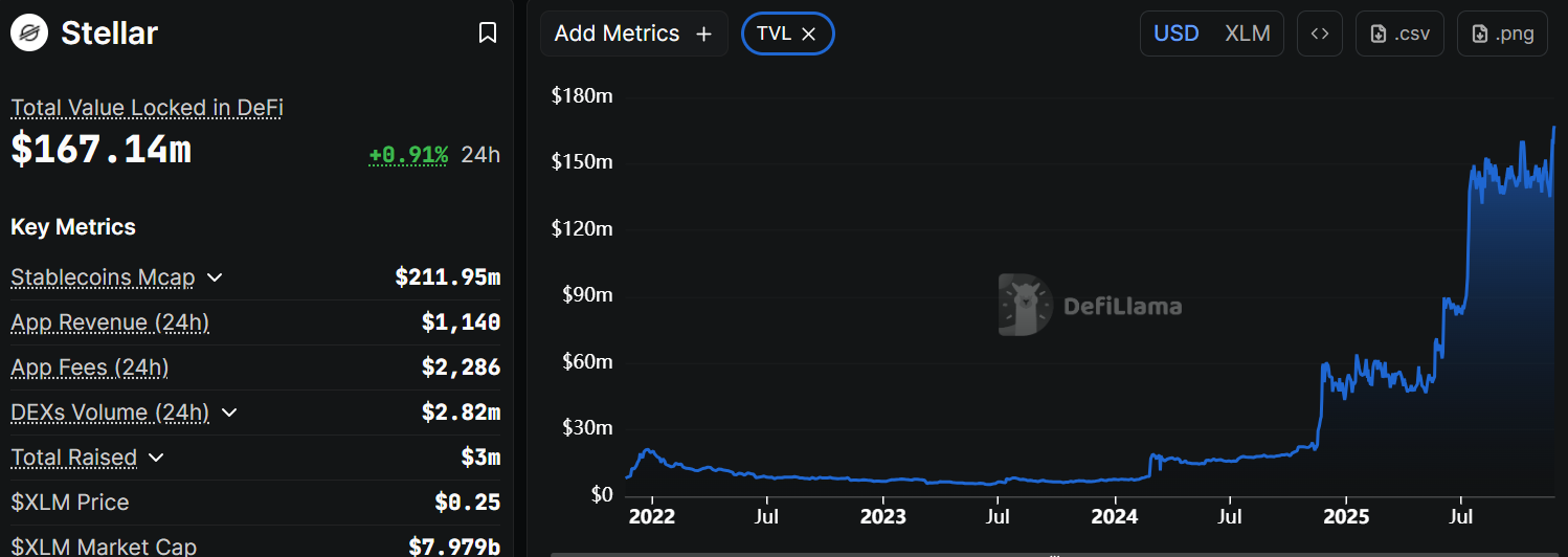- XLM DeFi TVL has risen to an ATH of $167 million, indicating increased activity.