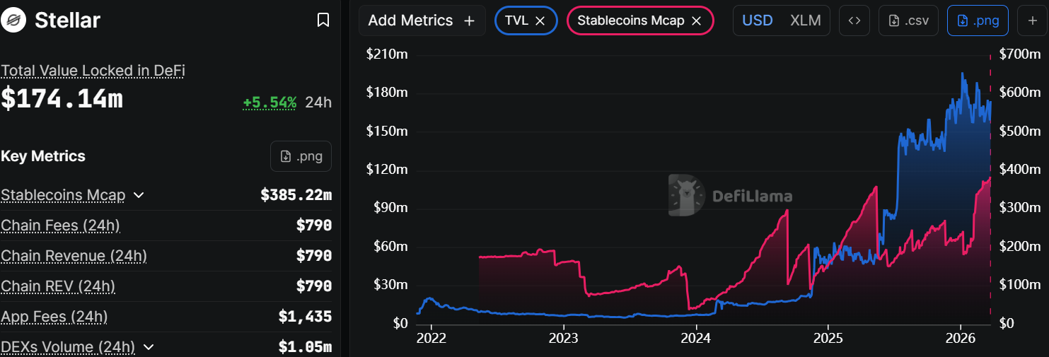 Stellar TVL and Stablecoin Mcap: DeFiLlama