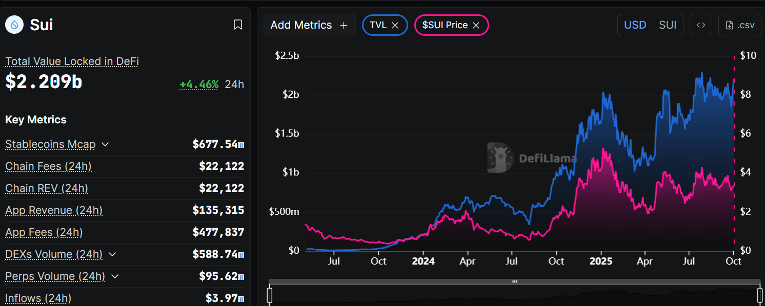 - SUI DeFi TVL has surpassed $2.20 billion, as analyst predicts a breakout to $7.