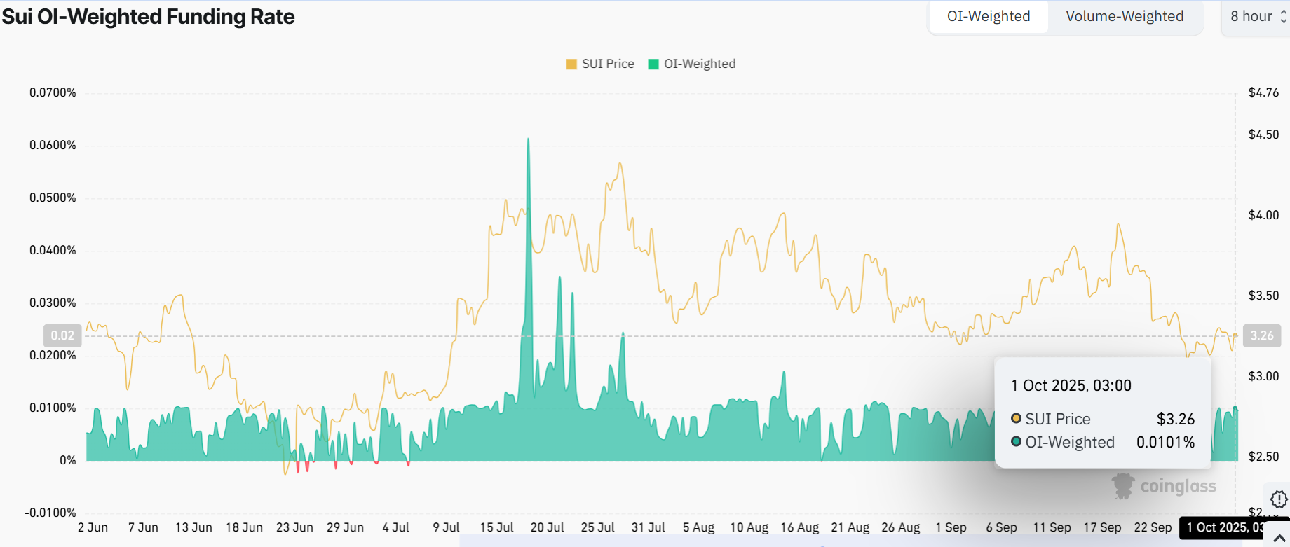 Notably, Coinglass data shows a positive OI-weighted funding rate. Sui appears to be gaining positive foot traffic, as evidenced by the rise in OI-weighted funding rates at 0.0101%. The funding rate chart indicates that interest has been steadily increasing, suggesting a bullish trend.