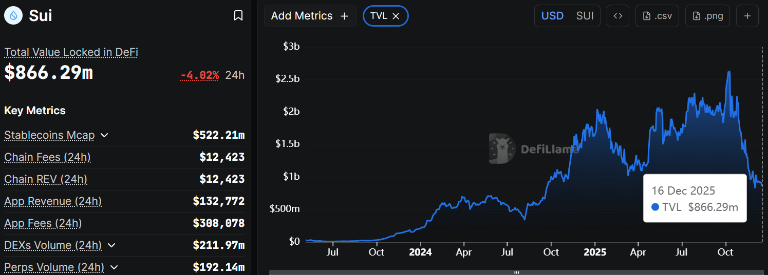 On the other hand, the Sui blockchain has experienced a decreasing demand on the network side. Its Total Value Locked (TVL) has plunged by 4.02% in the past 24 hours to reach $866.29 million. It means that users are liquidating their online assets.