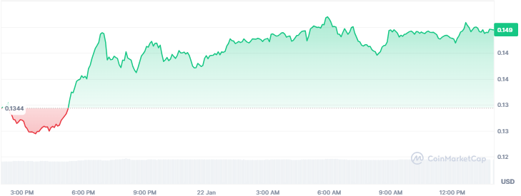 Canton is trading at $0.1490 after recording a gain of 11% to appear on the list of the top crypto gainers over the last 24 hours. Canton’s price has remained up by more than 70% for the past 30 days and 13% in the last week.