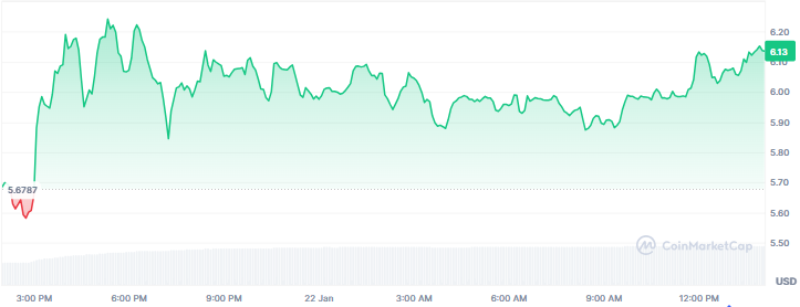 After surging by more than 80% over the past month, MYX Finance is back in the spotlight again today. MYX is trading at around $6.15, up 12% on the daily chart. In addition, its market cap and trading volume have surged by 1.52 billion and $23 million, respectively.