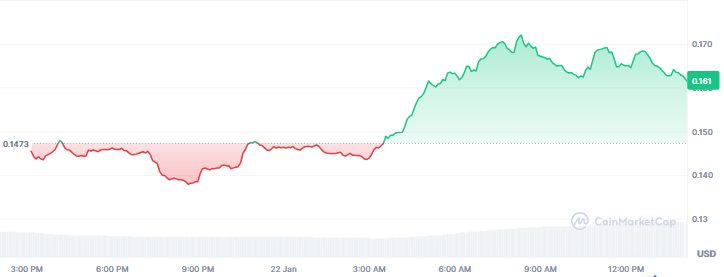 The Sandbox has emerged as the top crypto gainer today, with a surge of 13% over the last 24 hours. This latest rally coincides with its ongoing rally, which has seen the altcoin surge by 30% and 45% on the weekly and monthly charts. Currently, the price is hovering around $0.1607 with a market cap of $440 million.