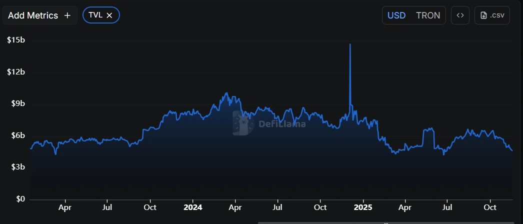 According to the DefiLlama data, the TVL of Tron fell to $4.61 billion on Tuesday and has been gradually decreasing since the beginning of October. Declining TVL is a pointer to a decreasing activity and loss of user interest in the Tron ecosystem. This means that the number of actors depositing or communicating with protocols based on TRX is going down, which may cause a further drop in Tron price.