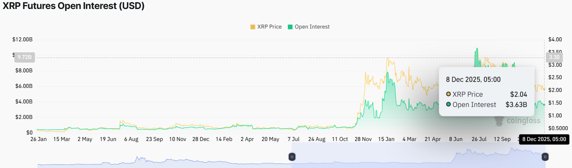 In the meantime, the retail demand has been suppressed recently. According to CoinGlass data, the XRP futures Open Interest (OI) is valued at $3.63 billion, which is a little higher than $3.59 billion on Sunday.