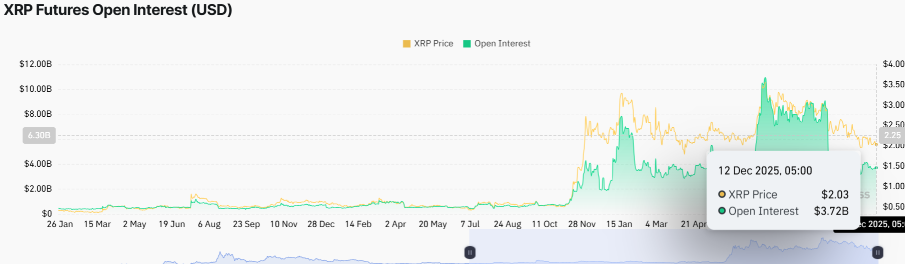 - XRP retail demand remains suppressed, as the open interest stabilizes at $3.72 billion.