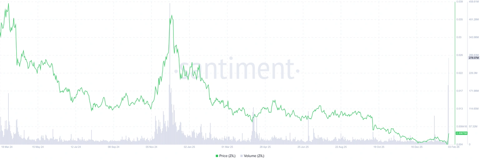 According to Santiment metrics, the total volume of trading (the total volume of trading made by all exchange applications on the chain) has been at an all-time high of $278.07 million on Tuesday, its largest volume since December 2024. This growth rate implies that there is an increase in the interest and liquidity of traders on Zilliqa, which increases its positive prospects.